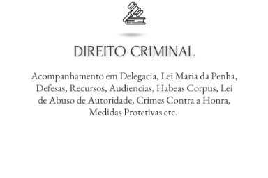 Cível, Família, Trabalhista, Empresarial, Criminal, Contratos, Cobranças, Liberação de bloqueios e diversas outras.